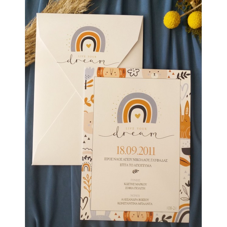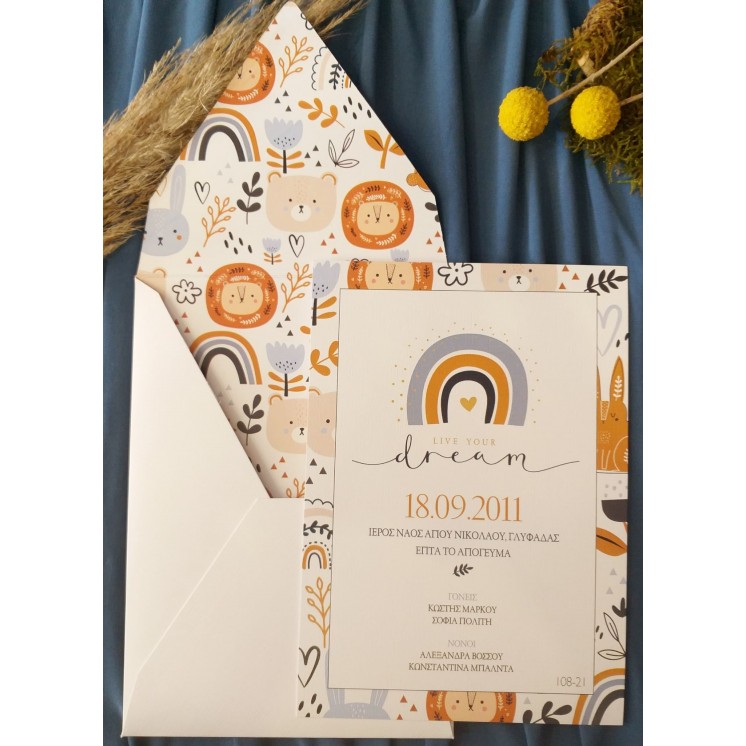 ΠΡΟΣΚΛΗΤΗΡΙΟ ΒΑΠΤΙΣΗΣ JUNGLE RAINBOW
